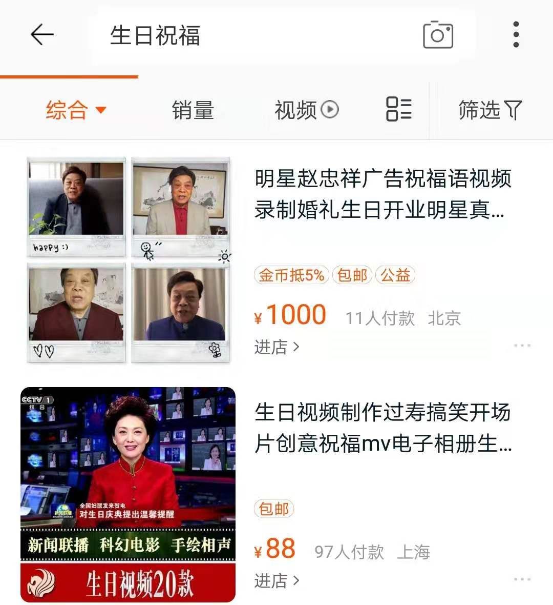於是你打開了淘寶,輸入關鍵詞:生日祝福,映入眼簾的信息讓你大開眼界。