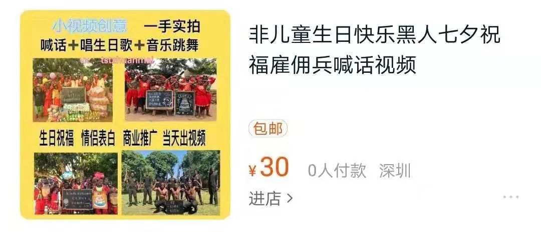 手指繼續向下滑動,接下來出現的店鋪讓你目瞪口呆:黑人僱傭兵喊話祝福。