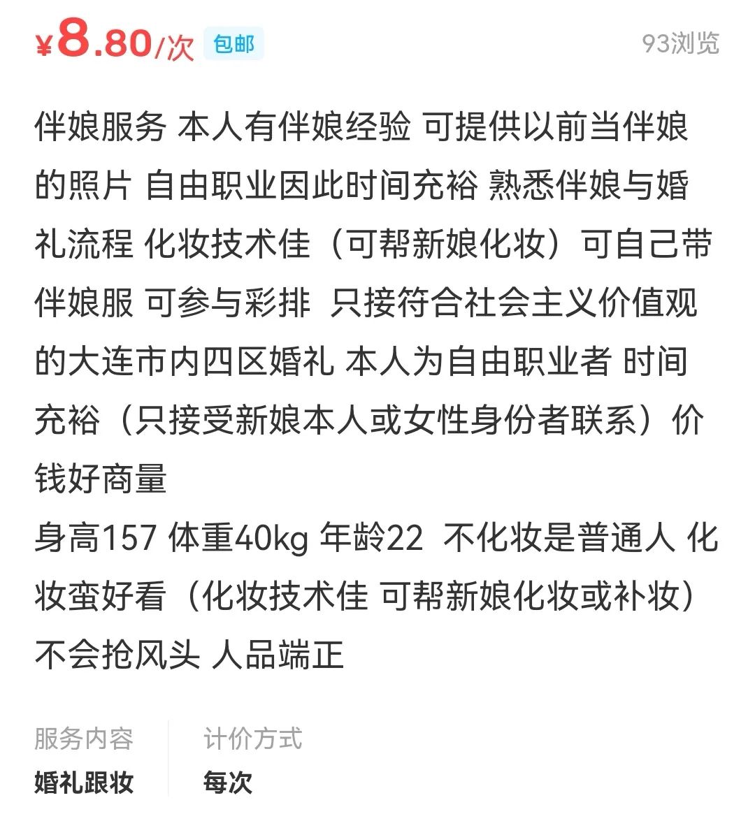 還有“包黃”服務,賣家自稱長得夠醜、談吐粗俗、吃相難看,相親對象見了立馬跑路。