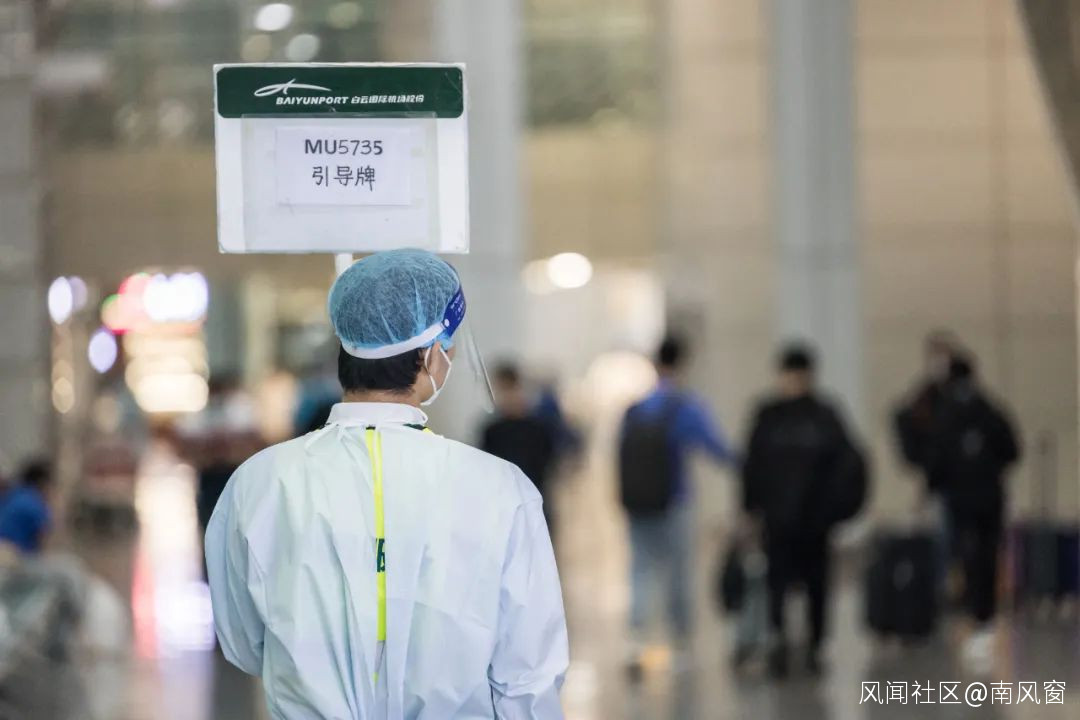 3月21日,手持“MU5735引導牌”的機場工作人員(南風窗記者 郭嘉亮 攝)