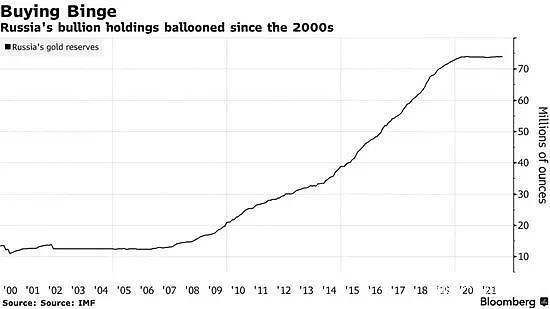 不過,俄羅斯也早有準備,就是有意識地搞黃金。