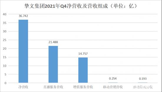 據悉,得益於陌陌主APP虛擬禮物業務的持續增長以及引進多重付費方案後,摯文集團在產品和運營方面的創新,2021年第四季度,摯文集團淨營收達36.742億元,其中,直播服務營收為21.488億元,增值服務營收達14.757億元,均較去年同比上漲,營收結構也得到了進一步的優化。