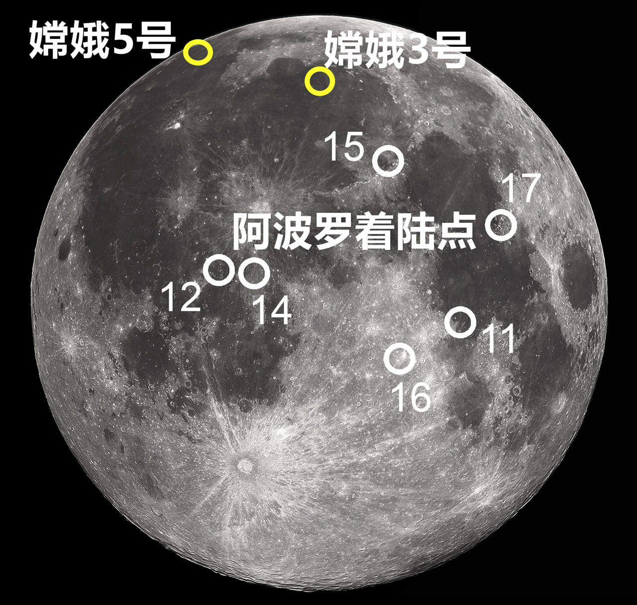 為了研究月球最年輕的火山,嫦娥五號降落在靠近月球北極“風暴洋”的平原上;阿波羅12號的着陸點在月海與高地交界處的一處火山口,而阿波羅14號則是第一個降落在月球高地的探測器。