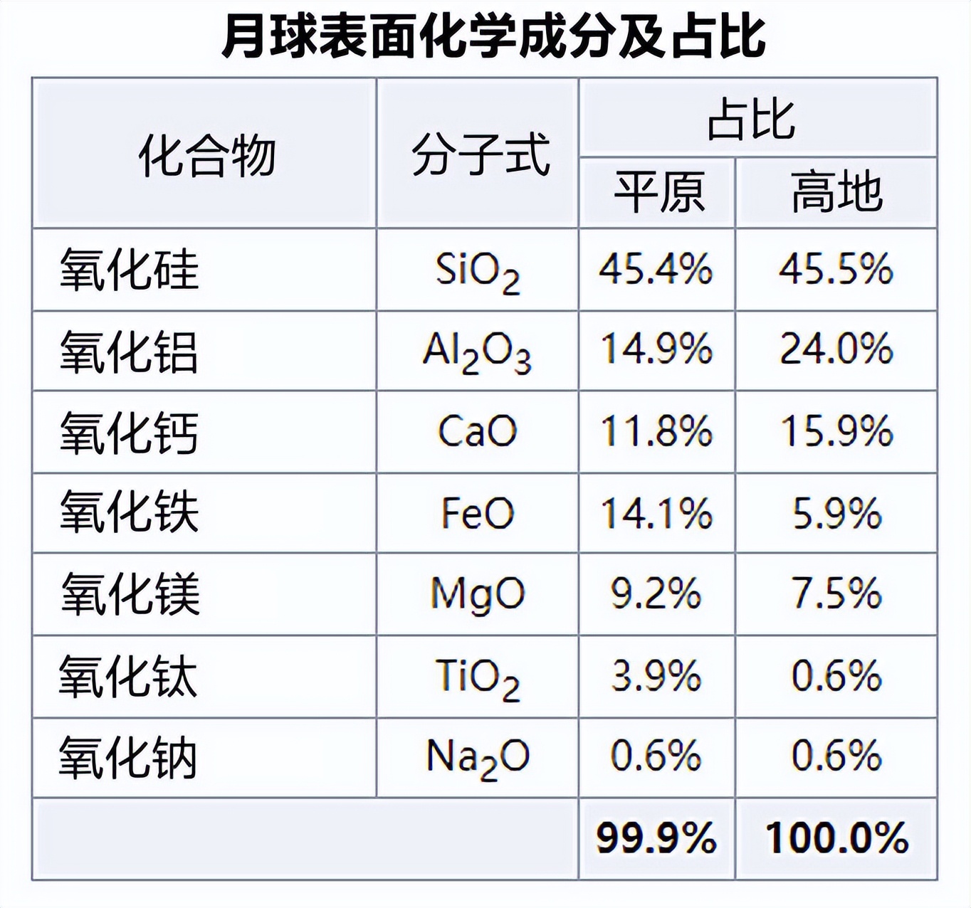 因為月球是由地球撞出去的碎片聚攏而成,所以基本上地球有什麼,月球也有什麼,照理而言二者的成分應該相差不了多少。