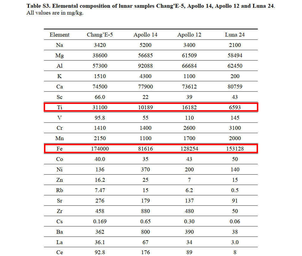 鈦和鐵含量與阿波羅樣品存在明顯差異