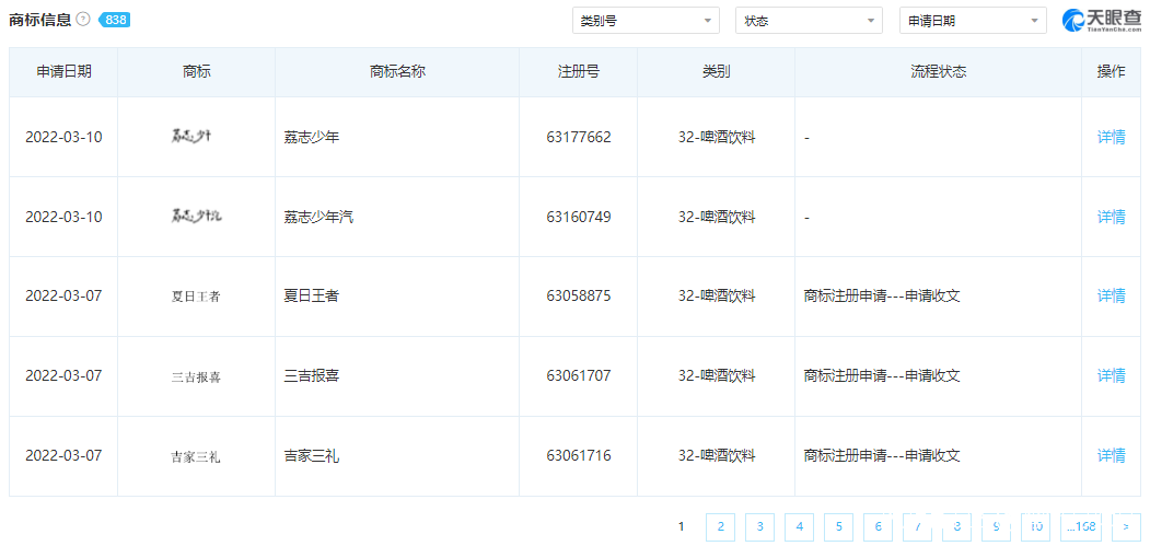 在天眼查數據庫中,可以清晰看到,王老吉所掌握的商標數量,已經高達驚人的838個。