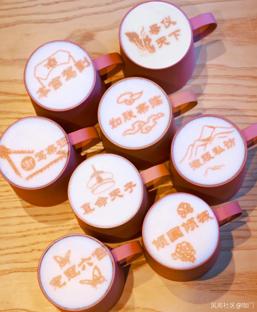 咖啡領域,故宮角樓咖啡的拉花,也是一種頂部造景,在拉花上寫上“宮味”文字,也吸引了很多打卡。