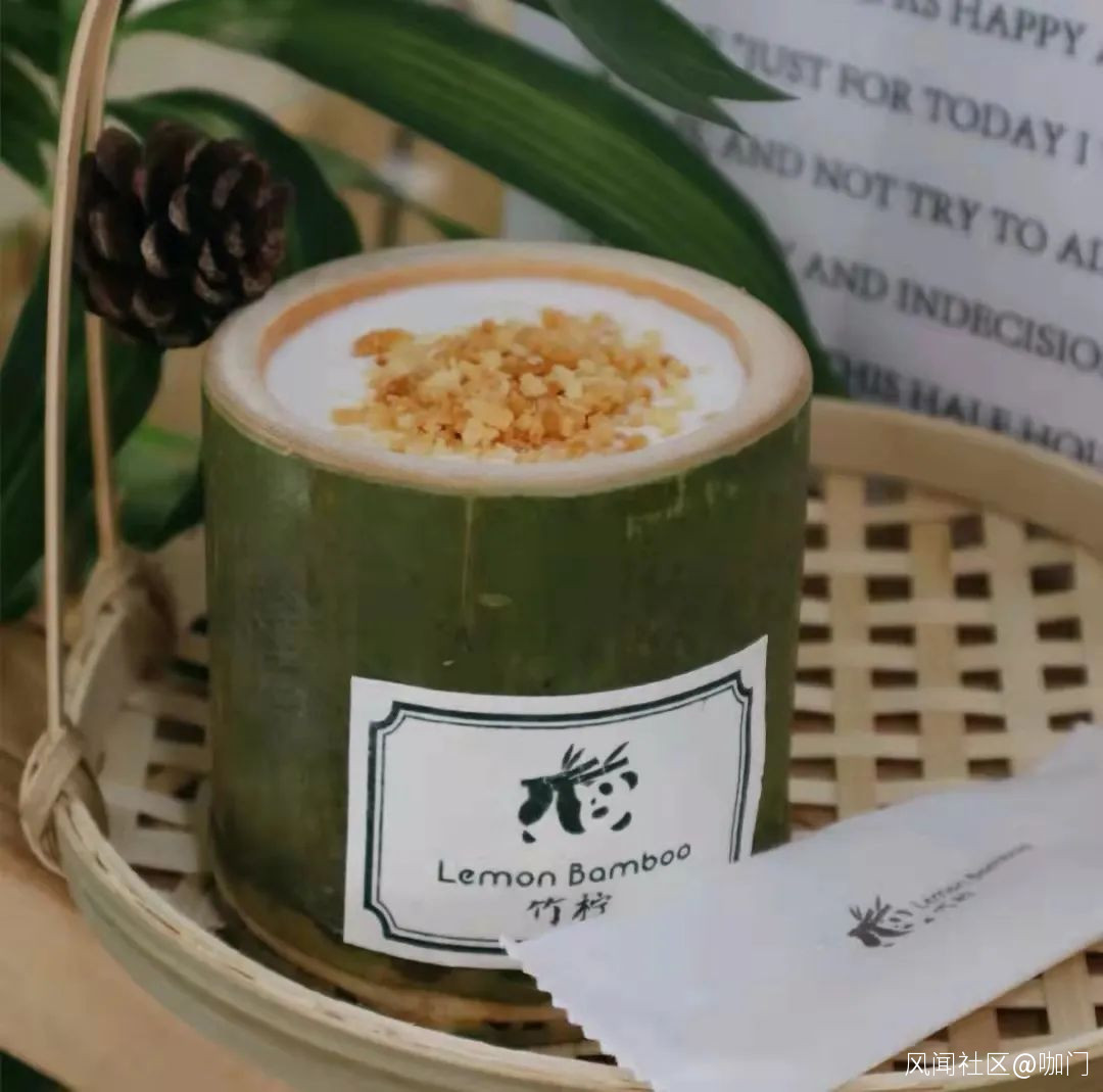 小紅書上,廣州、西安、福州等地,都流行起了竹筒咖啡,以竹筒作為杯子,並以斑斕葉等做為點綴。