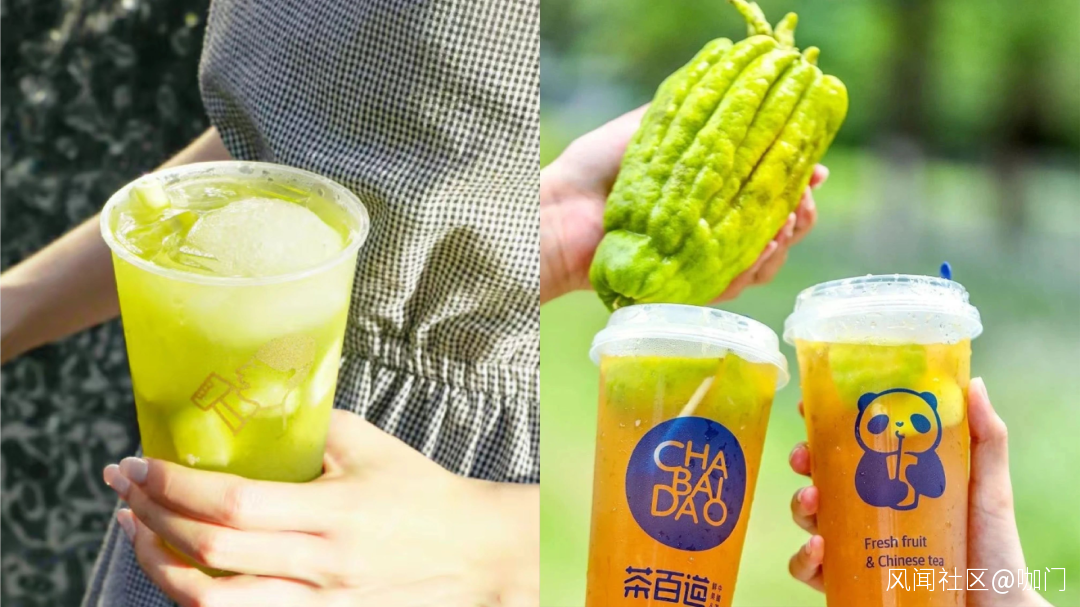 同在東南亞菜系中常被使用到的香茅,也有不少品牌在推新,比如喜茶的香爆檸和綠暴檸,茶百道的佛手柑檸檬茶中都添加了香茅。