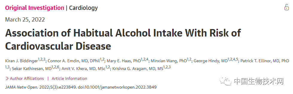 北京時間3月26日凌晨,發表在美國醫學會開放期刊**《JAMA Network Open》上的一項最新研究中,來自美國麻省理工學院和哈佛大學布羅德研究所領導的研究團隊通過大規模人羣調查發現,無論喝多喝少,飲酒都與心血管疾病風險增加有關;而那些所謂飲酒能帶來益處的研究,實際上是混淆了其他健康生活方式因素帶來的有益影響**,而這些健康因素在少量飲酒者中很常見。