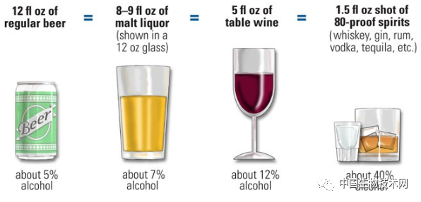 在這項新研究中,研究人員調查了英國生物樣本庫中371463名平均年齡57歲的成年參與者,他們平均每週飲酒9.2杯(關於標準1杯酒所含酒精的定義見下圖)。這些樣本包含參與者詳實的遺傳數據和健康信息。
