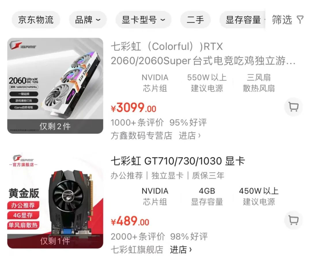 在京東這個電腦配件最大的交易平台,很多玩家也開始利用平台規則,合法合規抵制着高價顯卡。“京東庫存顯示和其他平台不一樣,即使我們拍下不付款,系統也會默認產品的庫存-1,而48小時之內我們可以不付款也不取消訂單,就能讓店鋪處於缺貨狀態而無法營業。”