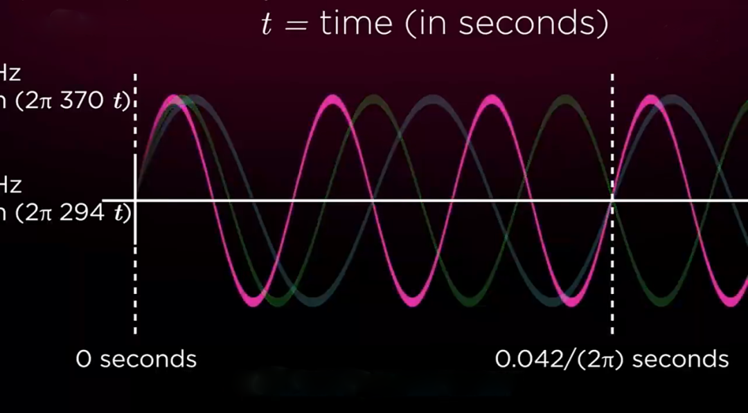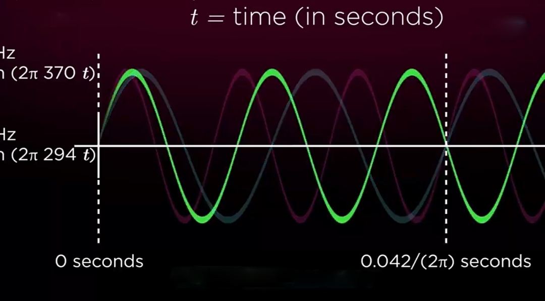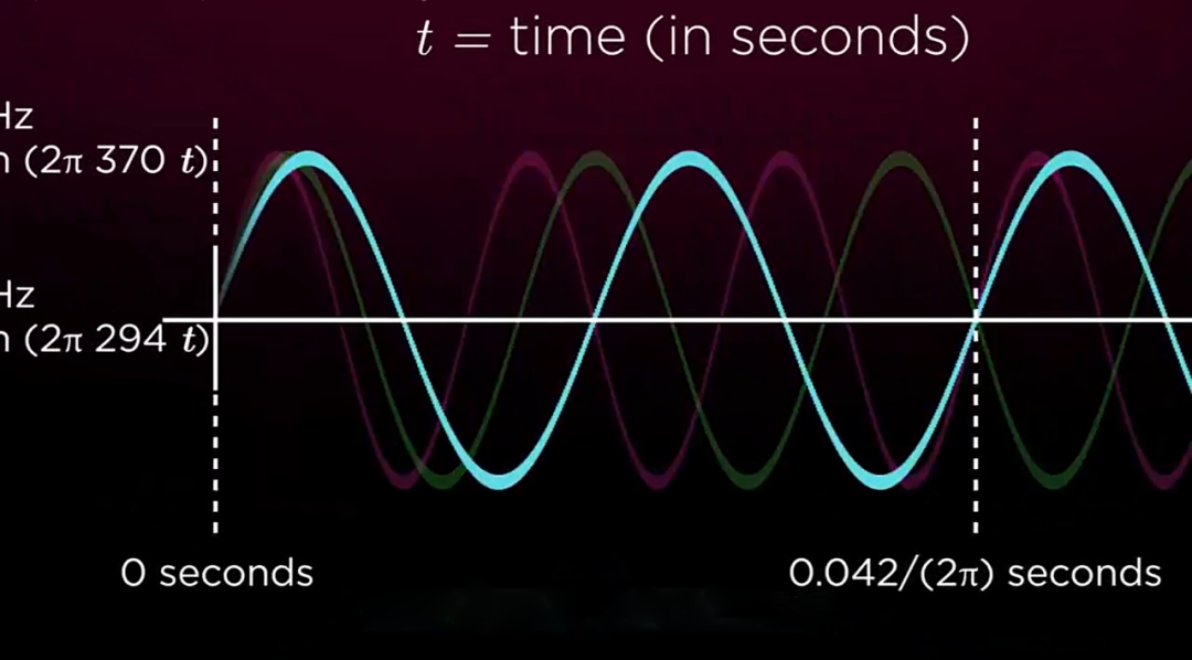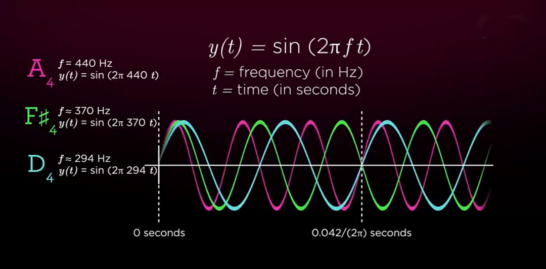 通過正弦函數為這三個音符賦值,就會發現它們都在原點(0,0)相交,然後又在(0,0.042)相交。