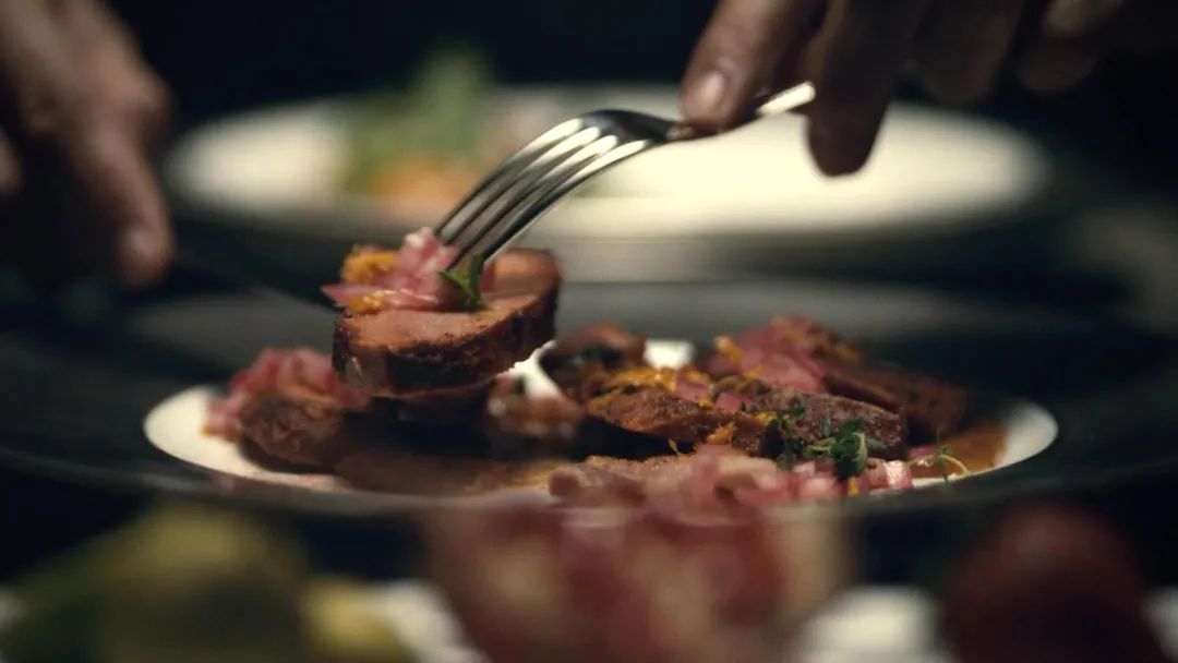 接着,隨着歌劇《浮士德》的音樂,他以體檢醫師為原料做了一道“清爽檸檬牛肝”,用書店經理的肺片做成了“燉牛肺”,用IT顧問的大腦做出了一道“帕爾馬乾酪焗羊腦”。