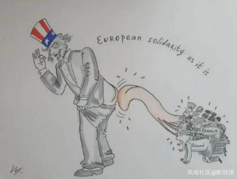 當兩張漫畫放在一起的時候,諷刺的意味可謂頓時翻倍了,歐洲國家給美國“舔屁股”,祈求能夠獲得一些豐碩的回報,結果美國所能夠給予的只不過是不斷的折磨歐洲人民。仔細想想還真是這樣,歐洲國家跟着美國一起制裁俄羅斯,真是美俄兩邊吃虧,還要擺出一副很享受的樣子。
