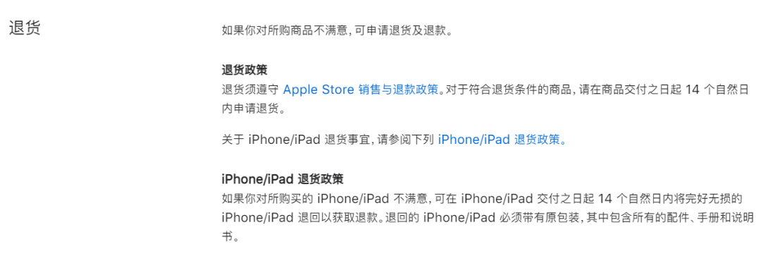 只要是在蘋果官網購買的產品,包裝完好產品無破損,就能在 14 天內都可以進行一個款的退。