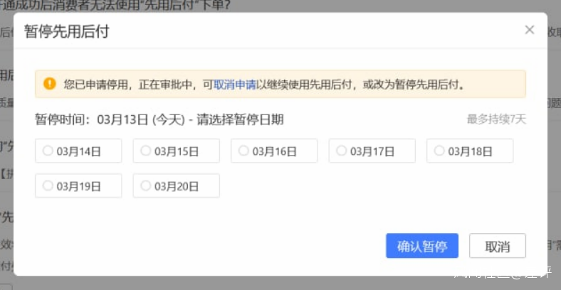 他在某個電商平台經營的店鋪,最近遇到了平台建議商家開啓**“ 先用後付 ”**功能的彈窗。