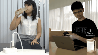 這種方法甚至能讓相距遙遠的朋友也共享同一杯水的味道。如果A喝到了好喝的飲料,機器會解讀這種飲料的味道,並將信號傳到B裝了白水的帶電杯子裏。