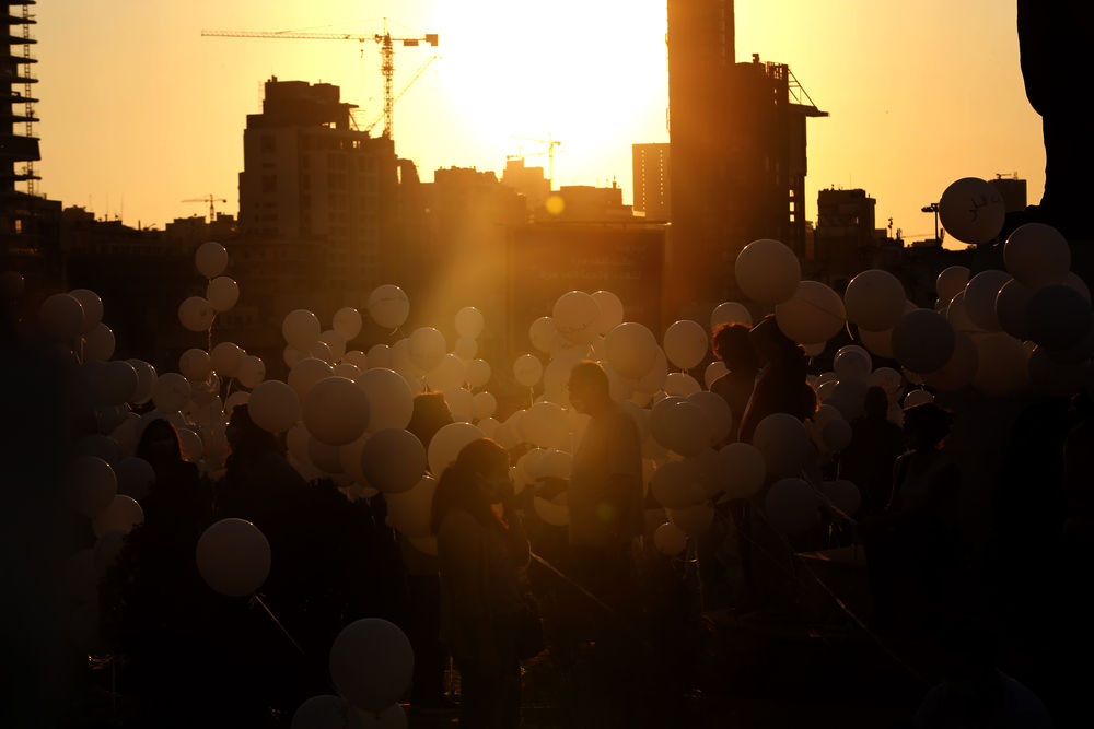 2020年10月4日,在黎巴嫩貝魯特港口附近舉行的悼念活動上,人們準備放飛氣球。新華社發