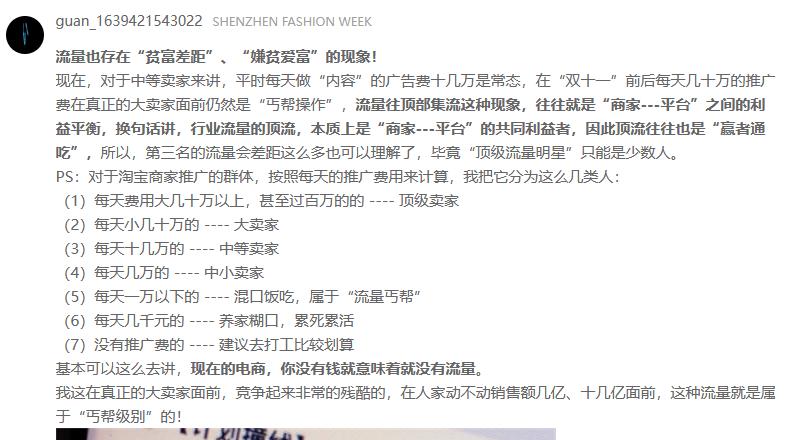 現在的電商,不能按照以往5年、10年的經驗去討論,沒有真正的“實力”,會發現眾多小商家最終是為平台打工,而真正能利用好併發揮好平台優勢、並經過市場的篩選後,只能留下供應鏈、運營、產品、員工等都是經得起市場考驗的商家,這也可以理解電商行業的為“大浪淘金”,“能者多賣貨”,不適應這淘汰。