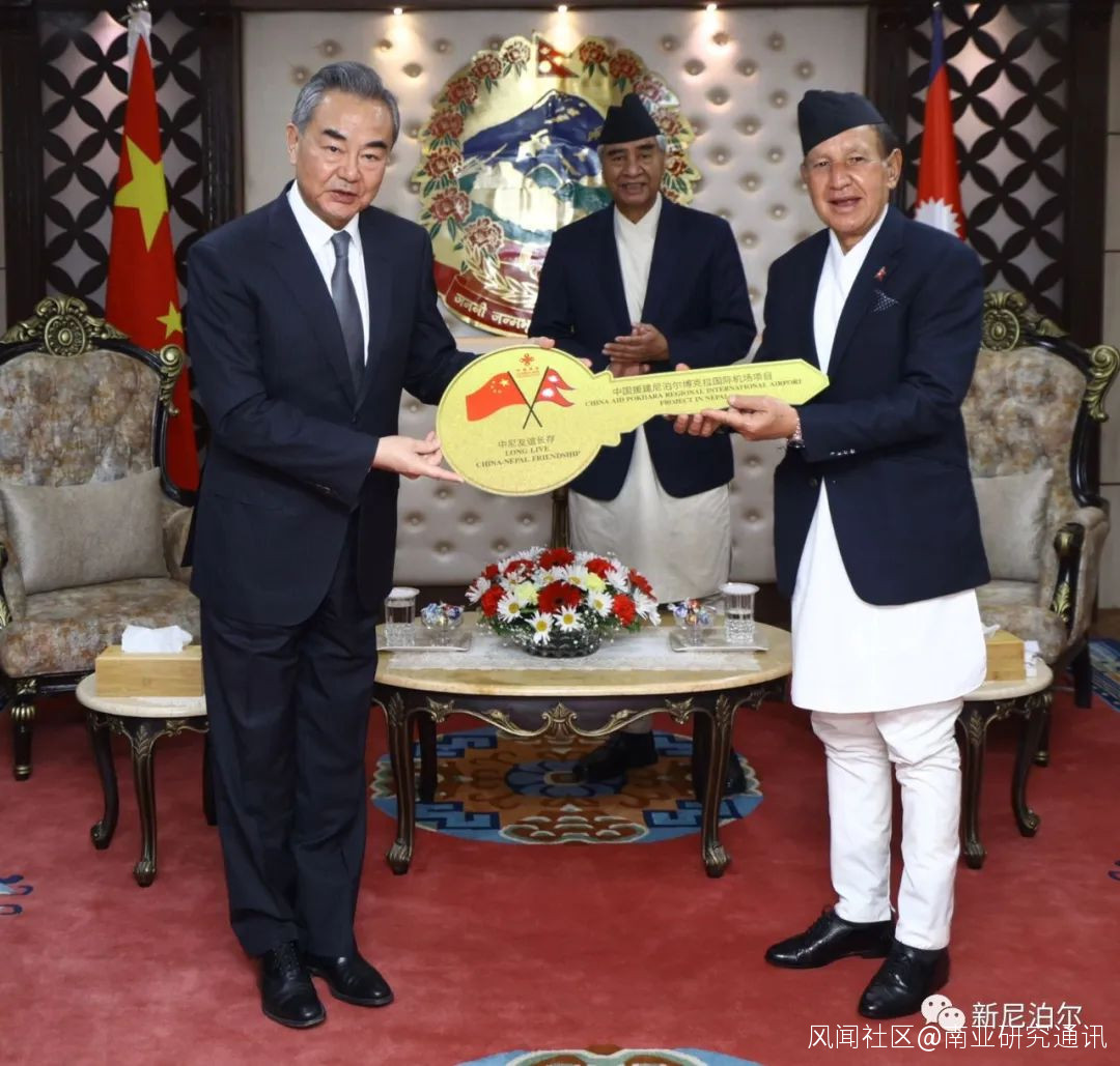 當天,王毅還拜會了尼泊爾總理德烏帕。在德烏帕的見證下,王毅與尼外長卡德加參加了博克拉國際機場的交接儀式。