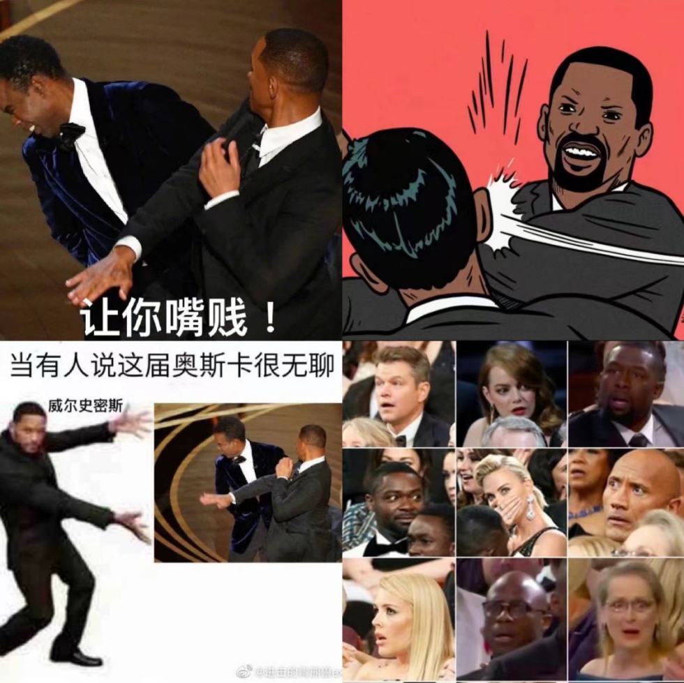 無論威爾·史密斯是生氣還是作秀,他都已經成為新一代網絡表情包。吃瓜羣眾生怕有人不看外國電影,還給威爾史密斯打人做了貼心本地化——好比吳京上台打了嘴謝楠的主持人張大大。