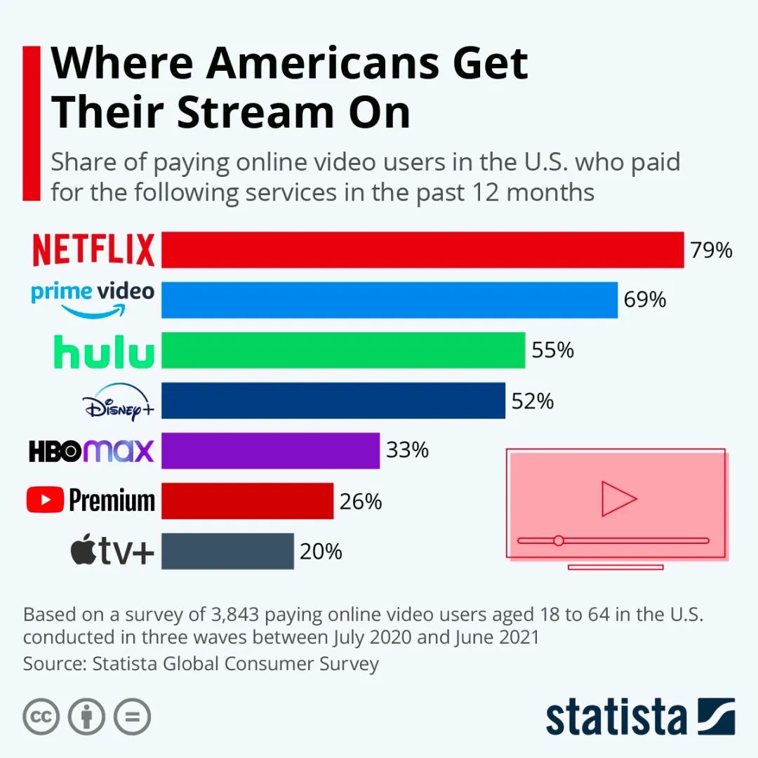 根據美國電影協會數據,2021年全球票房總收入為213億美元,只剩2019年的423億美元的一半。美國最大的院線AMC在過去兩年中累計虧損60億美元。而全球在線視頻服務的訂閲人數從2019年的8.64億人增至現在的13億人。
