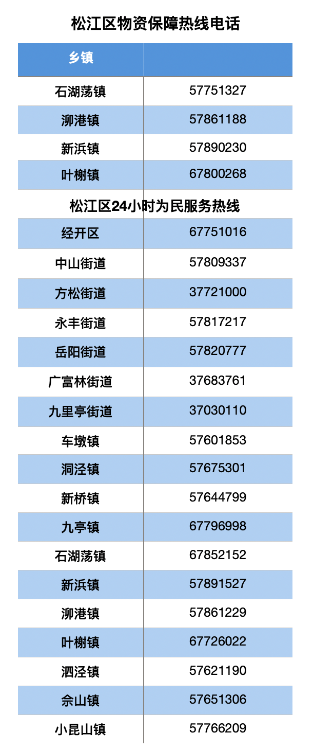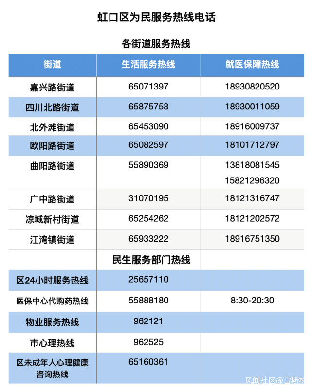 我蒐集到一些有用信息,比如文匯報整理的“上海16個區發佈的生活物資、就醫保障服務熱線”,分享給大家。