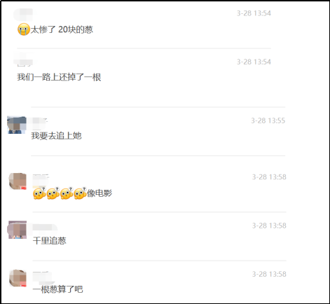 媽媽好不容易搶到的20元的葱,不慎掉落一根,