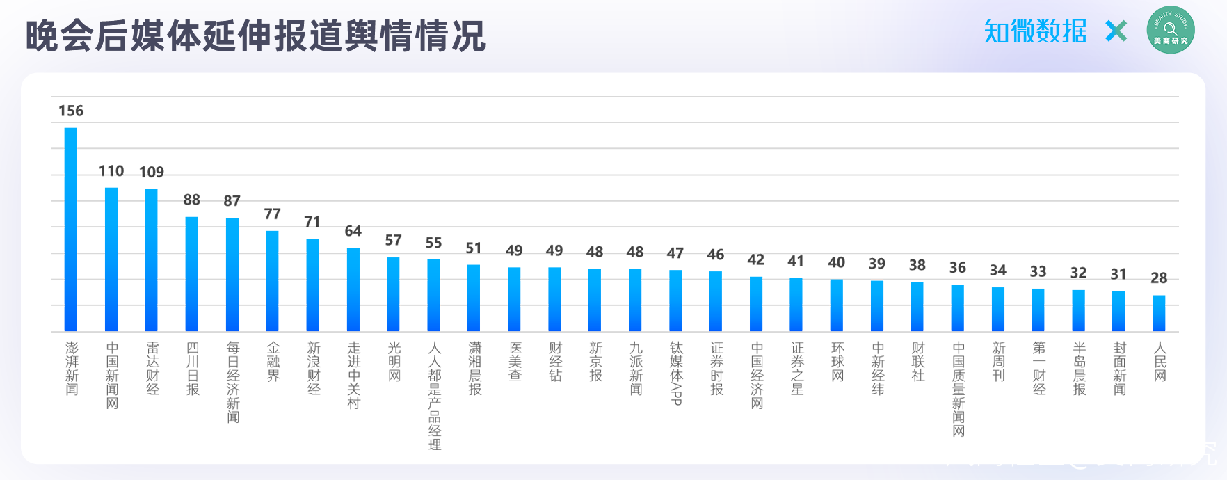 晚會後,非央視媒體延伸發文報道約19700篇,主要為培訓班事件跟蹤、被點名企業起底、自我選題。大多數報道仍聚焦在被央視點名的企業及事件。