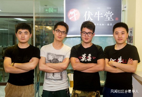 在第一家米粉店起步之初,店裏一共就四個人,即四位集資合作者——24歲的張天一、24歲的周全、25歲的柳嘯和25歲的宋碩。