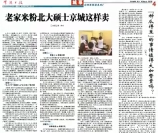 直到2014年4月的某一天,同事若無其事地遞給張父一份《常德日報》,頭條標題格外醒目——《老家米粉北大碩士京城這樣賣》。