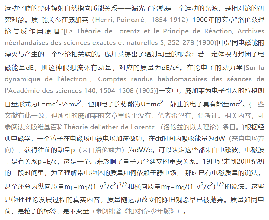 2. Friedrich Hasenöhrl, Zur Theorie der Strahlung in bewegten Körpern, Annalen der Physik 15, 344-370 (1904). 有英文本On the Theory of Radiation in Moving Bodies.