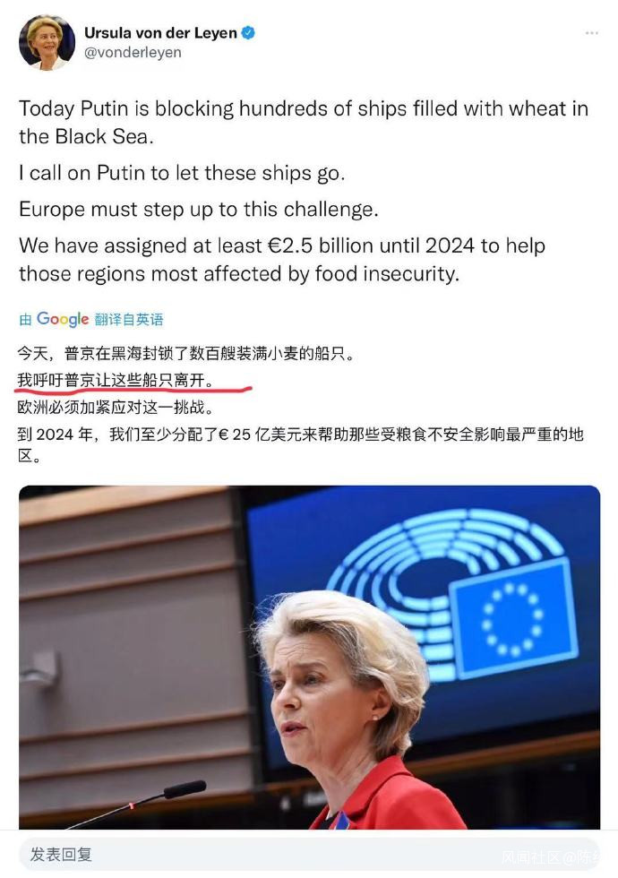5. 這個馮德萊恩,就和環保少女一樣,對普京説,我們是正義地制裁你,你必須接受。你是邪惡的,快把小麥交給正義的我們。這不是那種現實主義談判的思維,而是自我正義感上頭了,已經不知道世界的規矩了。