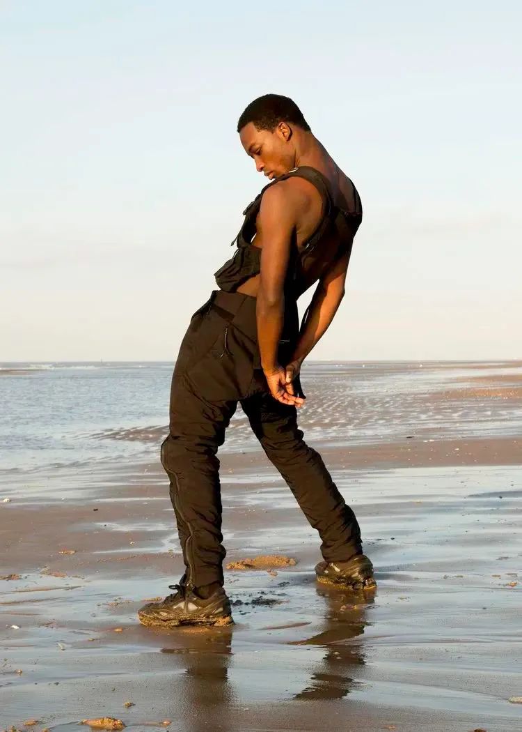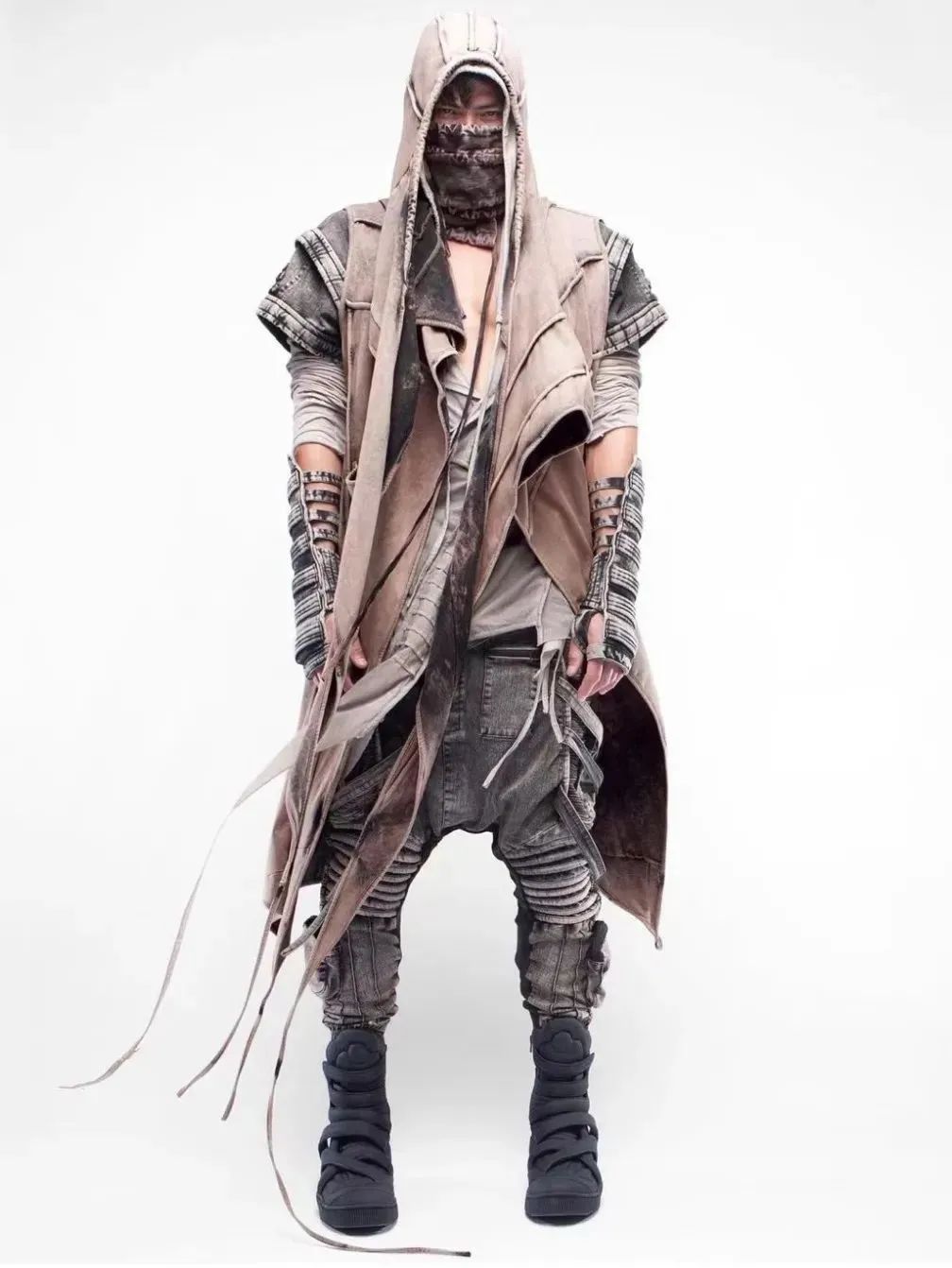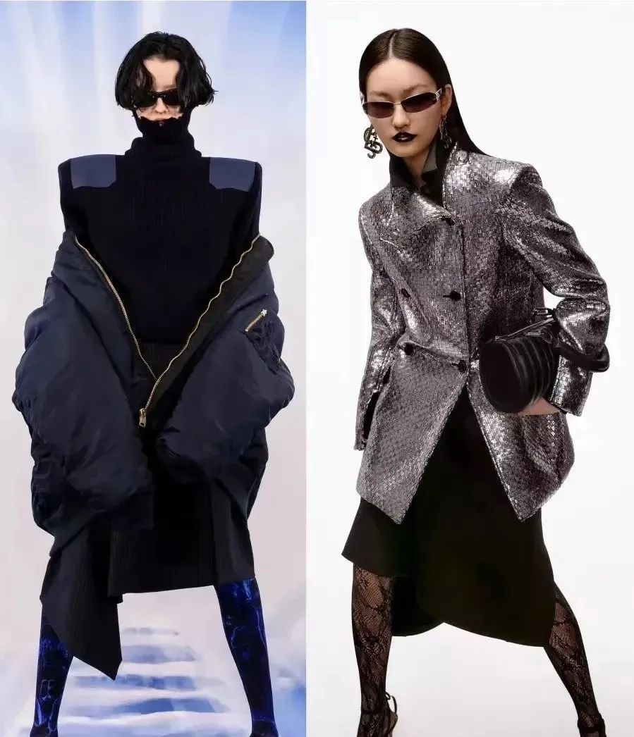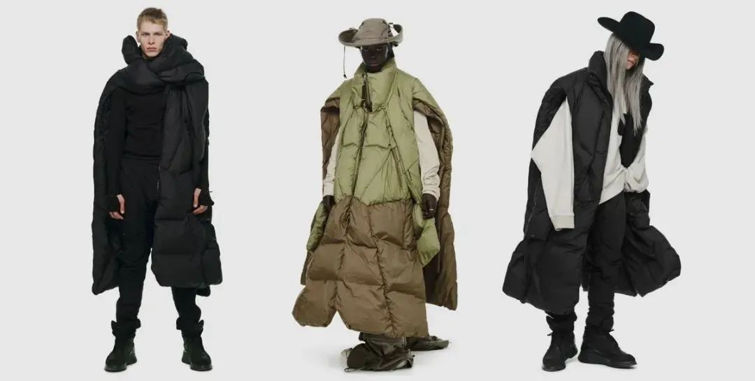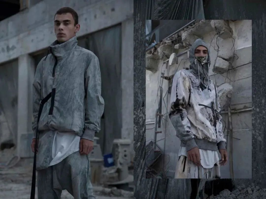 以黑白灰、大地色為主,對服裝進行解構,強調一種破敗中又帶有科技感的氛圍感。