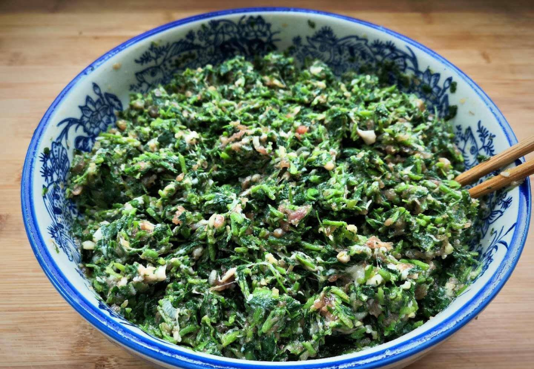 苜蓿餃子的做法並不複雜,首先需要把買回來的苜蓿清洗乾淨,其次就是把苜蓿剁爛,把其中多餘的水分擠出,然後用橄欖油或者用羊尾油炒幹。
