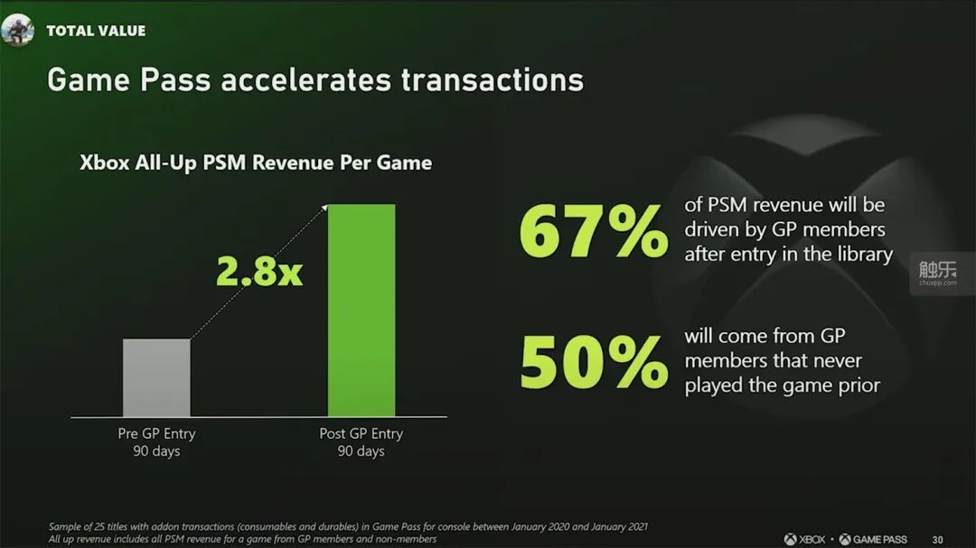 遊戲增加的收入裏,有67%是由XGP會員提供的,而這些會員裏有50%是新玩家