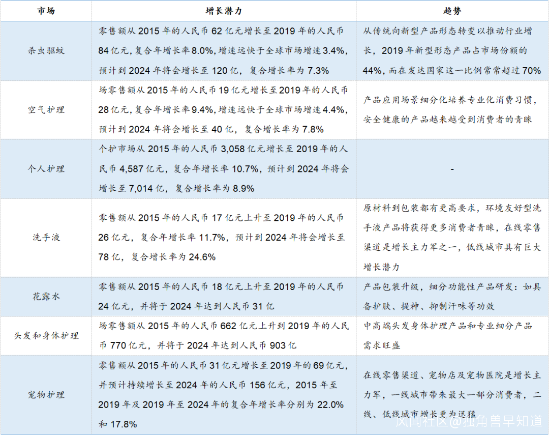 其他日化細分市場也具有較大增長潛力: