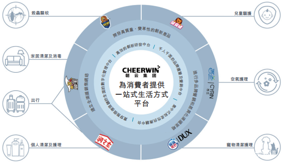 公司產品覆蓋數十種差異化的家居護理、個人護理和寵物護理場景,包括家居消毒、殺蟲驅蚊、家居清潔、空氣護理、個人清潔和護理、寵物清潔護理、寵物美容等。在家居護理行業中有三大品類、二十八個細分品類及四個品牌。根據灼識諮詢的資料,與其他前五大的中國家居護理公司相比,公司擁有最多細分品類數量,同時快速擴展個人護理和寵物護理品類和品牌,目前已經建立七大品類、十六個細分品類和三個品牌。