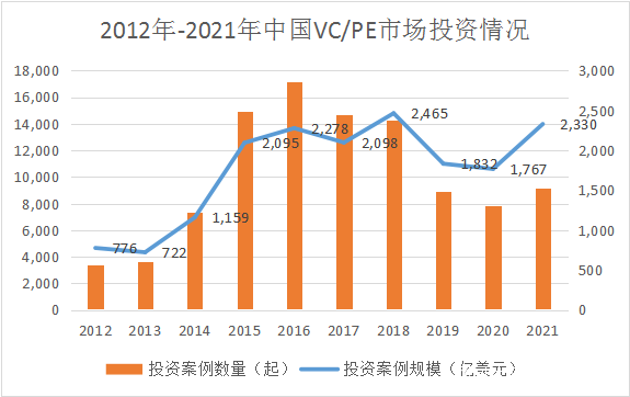 數據顯示,**2021年全國新增註冊各類企業超2780萬家,**相比2020年增加274萬家,增幅達10.94%。2021年中國VC/PE市場投資規模達到2330億美元,同比增長31.8%,投資案例數量9171筆,同比增長17%。
