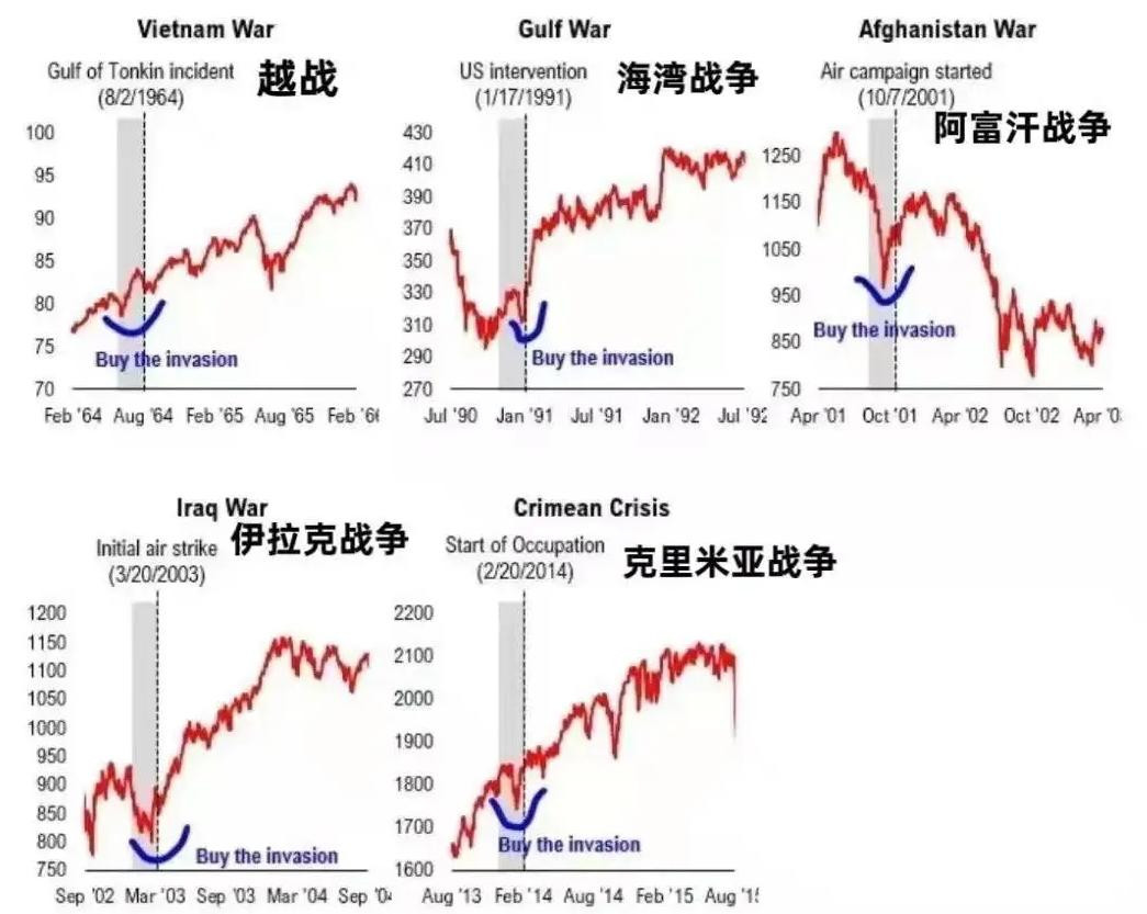 月末,俄烏衝突升級,加大了市場的恐慌和震盪,讓投資者感到無所適從。格雷資產董事長張可興認為,俄烏衝突只是局部衝突,對全球經濟尤其是中國市場的影響有限;其次,地區衝突對股市的衝擊是短期的影響,之後市場很快就會回到正常軌道。歷史多次局部戰爭與標普500的走勢圖一樣,短期看很嚇人,拉長看不過是“一朵浪花”而已。
