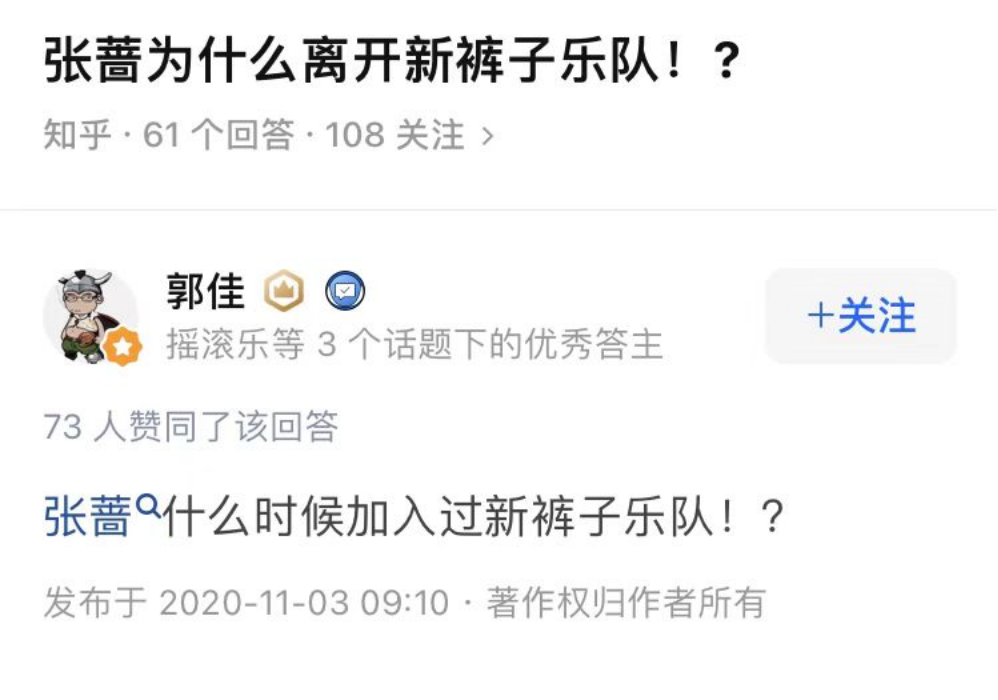 知乎上甚至還有人真情實感地以為她是新褲子的一員: