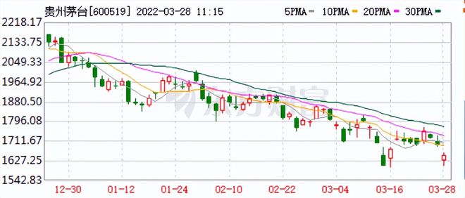 2021年年底開始,貴州茅台股價總體呈下降趨勢。截至2022年3月28日,貴州茅台收盤價跌至1660.8元/股。有媒體評論,貴州茅台此前估值過高,目前正跌回合理區間。