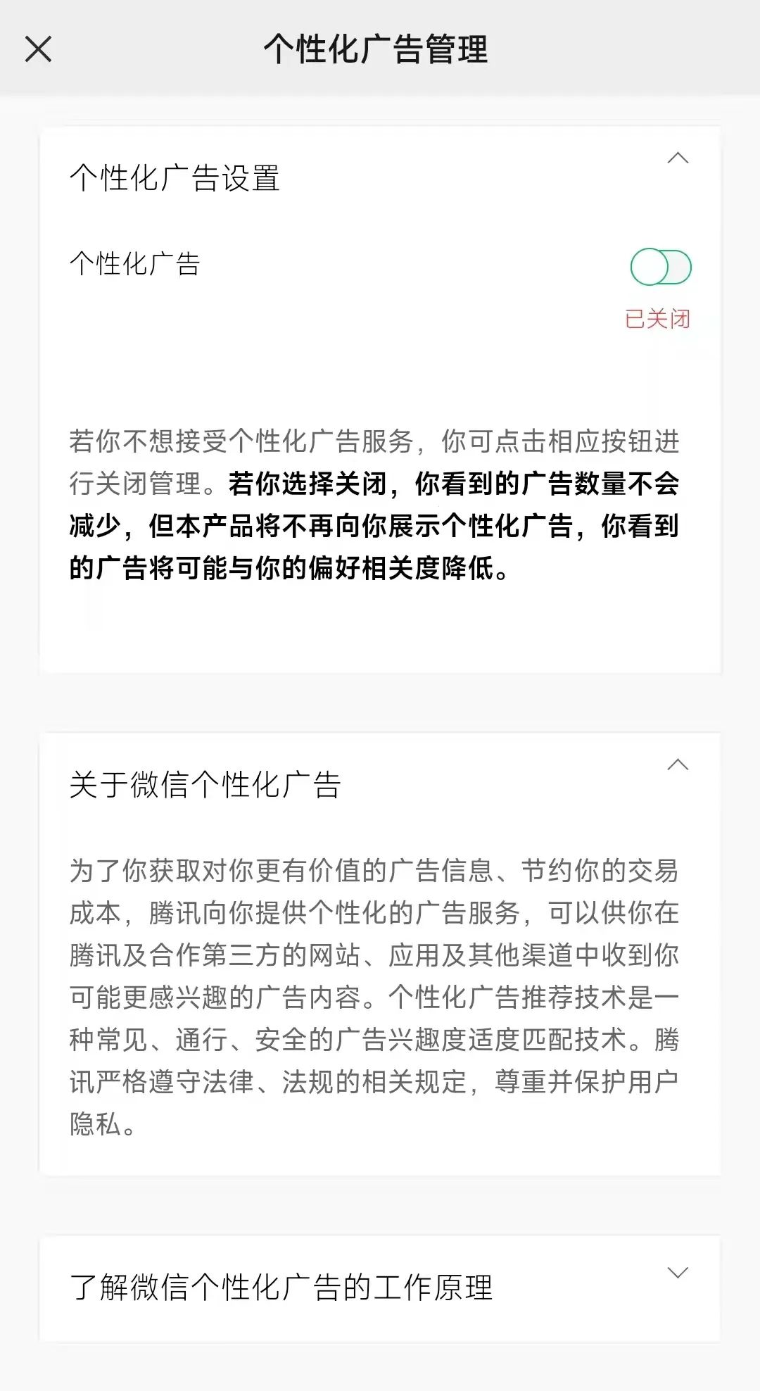 微信個性化廣告關閉頁面