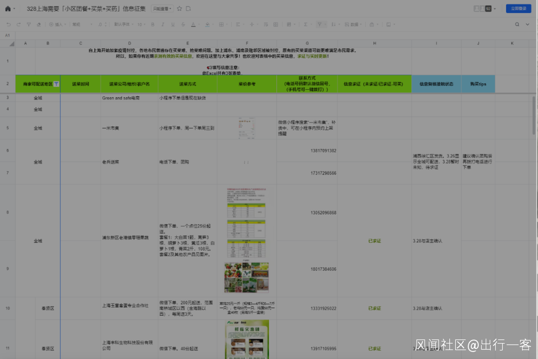 圖説:在線文檔再顯身手,上海需要【小區團餐+買菜+買藥】信息徵集,市民自助互助,“黃頁”信息越發豐富