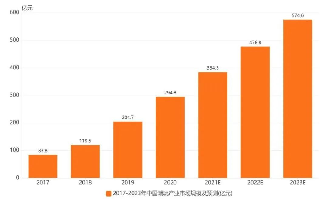 針對年輕人的潮玩在近十年來大行其道,並帶動了“潮玩經濟”的發展,市場容量不斷快速增長。據不完全統計,目前國內以“潮玩”為主營業務的大小企業有近千家,整個市場規模以百億計。