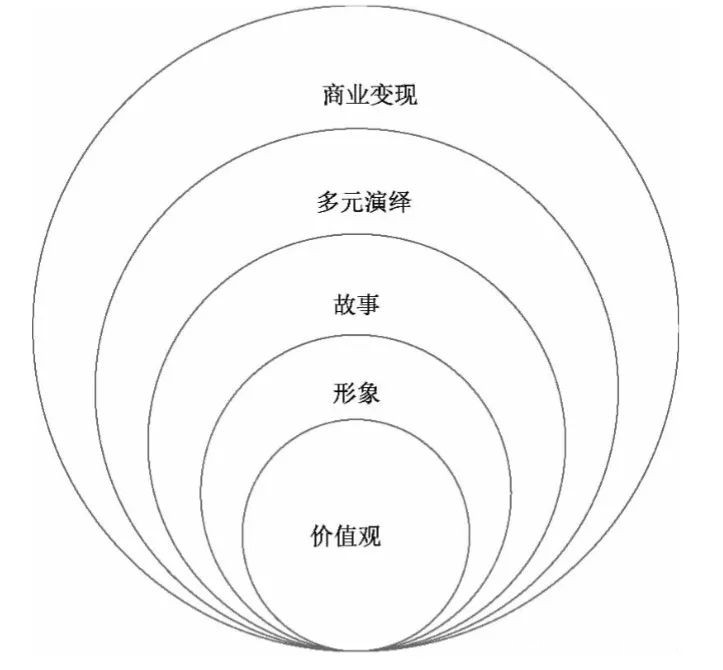 △向勇等學者認為,明星IP包含五項基本要素,各要素符合一種由內到外層層包裹的洋葱型結構。製圖:向勇