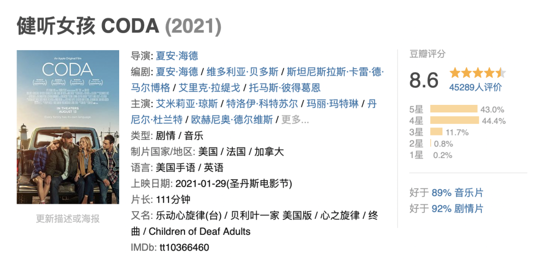 獎項拿了盆滿缽滿,可我觀察了很多影視博主的評論區,大部分人覺得《健聽女孩》不錯,但要拿到最佳影片,不夠格。
