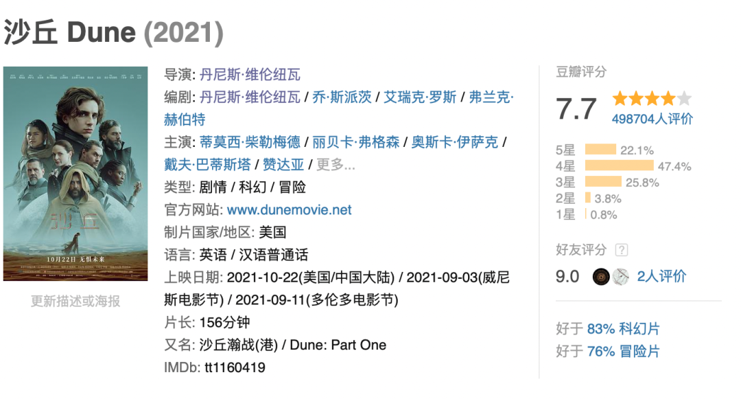 《沙丘》原著是首部同時獲得“科幻雙獎”雨果獎與星雲獎的作品;