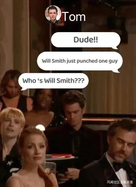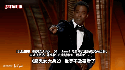本來威爾在台下還跟着笑,聽到這不爽了,因為妻子多次公開表示自己深受脱髮困擾。開這缺德玩笑確實是在傷口撒鹽。